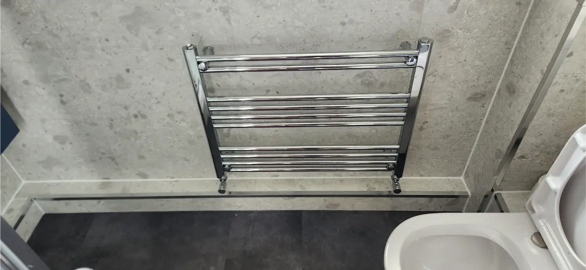 Heating We fitted a new radiator with proper pipework. It’s balanced so the room heats evenly.
