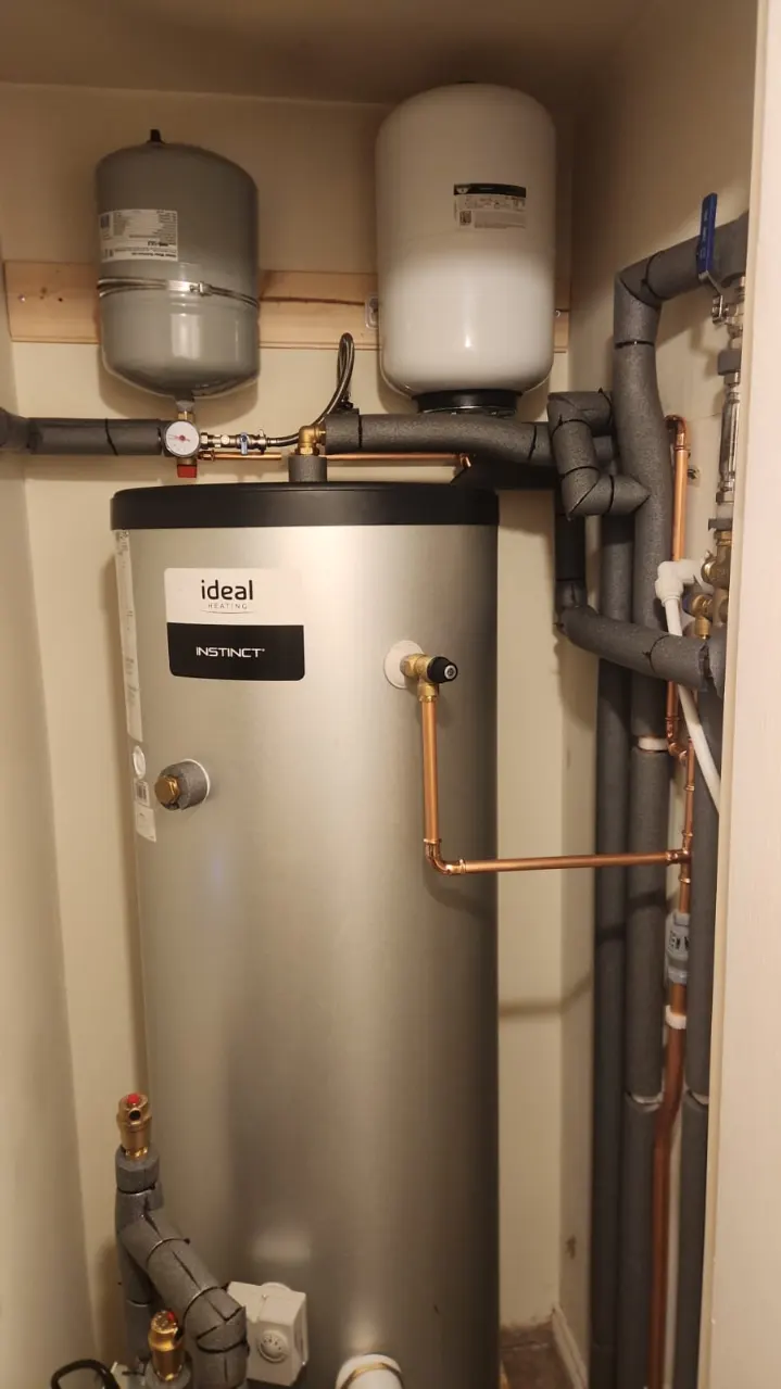 All work involving the heating system and controls was carried out by a qualified engineer, and the unvented cylinder installation was completed in accordance with current safety and installation standards.