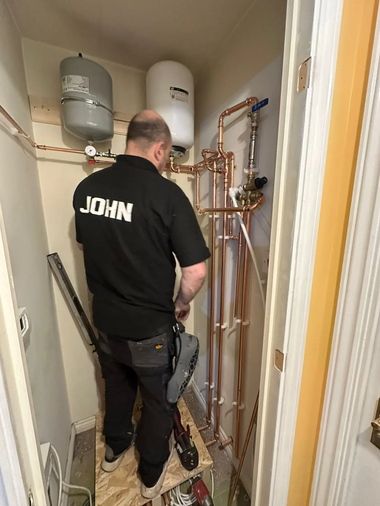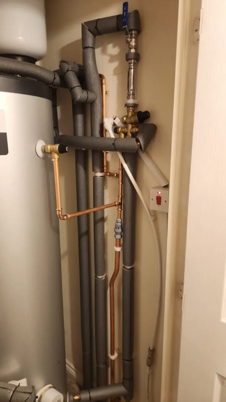 The pipework within the cupboard was redesigned to create a neat and accessible installation while ensuring the system operates safely and efficiently.